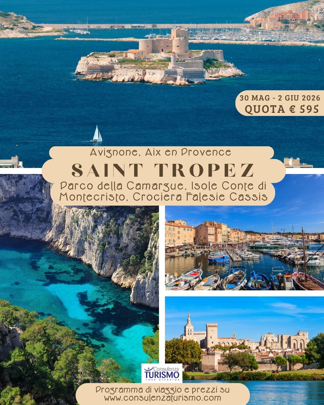 Saint Tropez, Parco della Camargue, Isole Conte di Montecristo, Crociera Falesie Cassis, Avignone e Aix En Provence